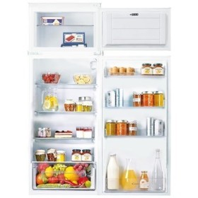 Frigorifero doppia porta Candy da incasso, con comparto congelatore, raffreddamento statico, cerniere a destra, altezza incasso 144 cm, larghezza 54 cm, capacità utile totale 220 litri. Classe energetica A+.