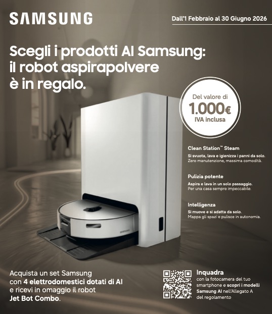 Acquista quattro prodotti in promozione, registrati e ricevi un RobotAspirapolvere Samsung Jet Bot Combo.